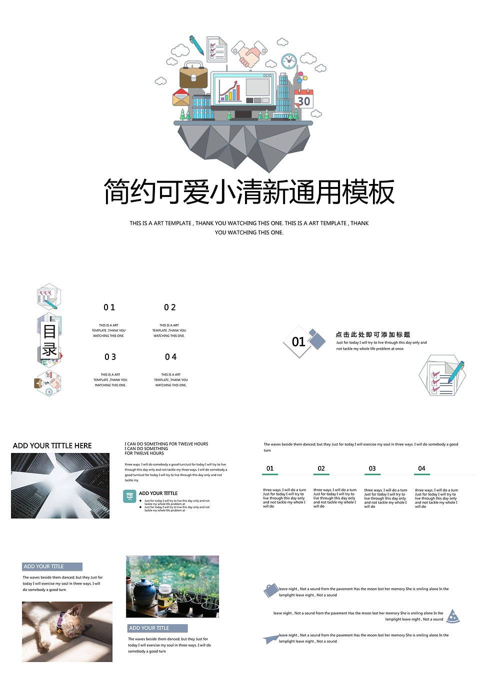 简约可爱小清新答辩通用PPT模板