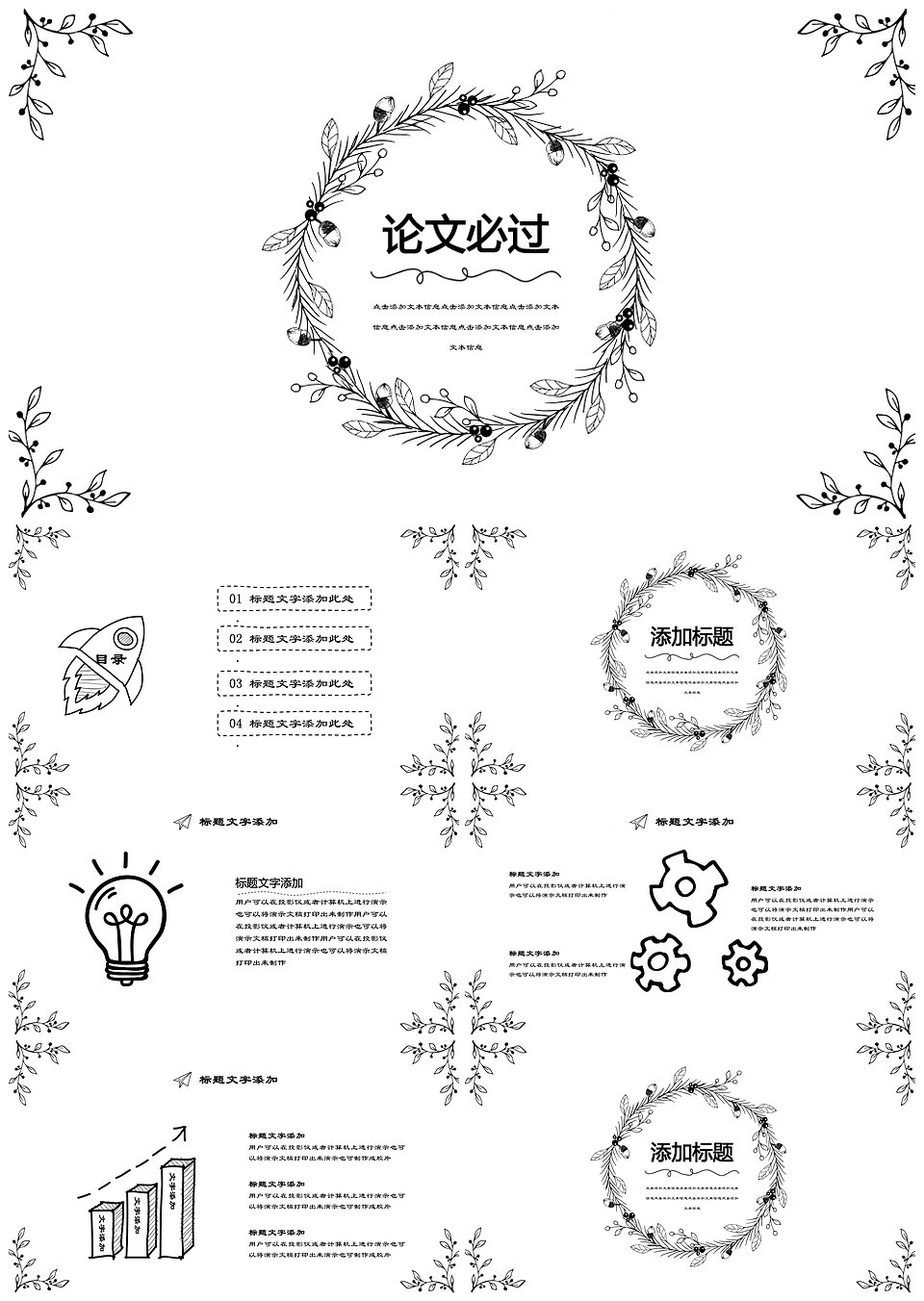 小清新黑白论文答辩通用PPT模板