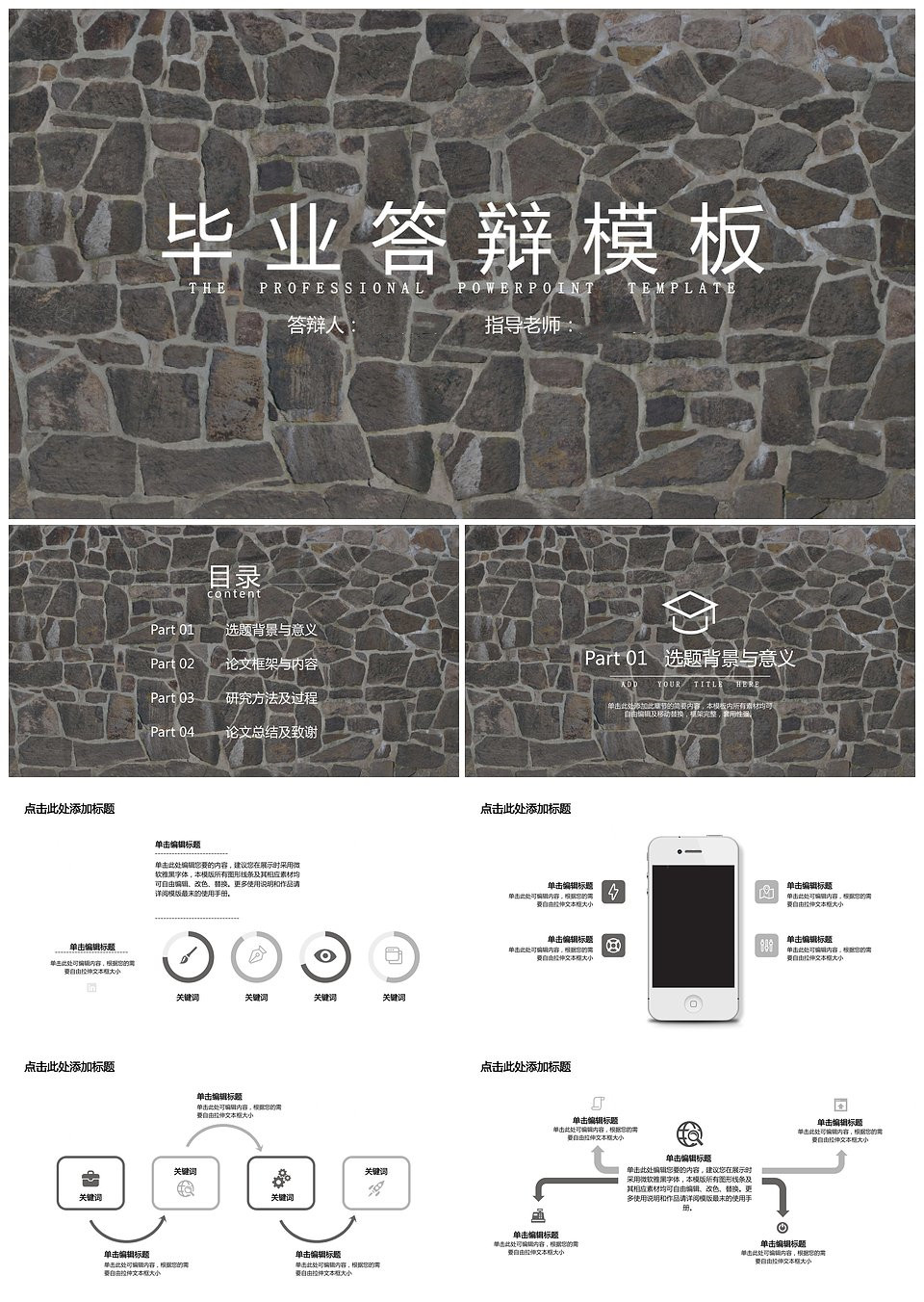 毕业答辩砖瓦背景PPT模板