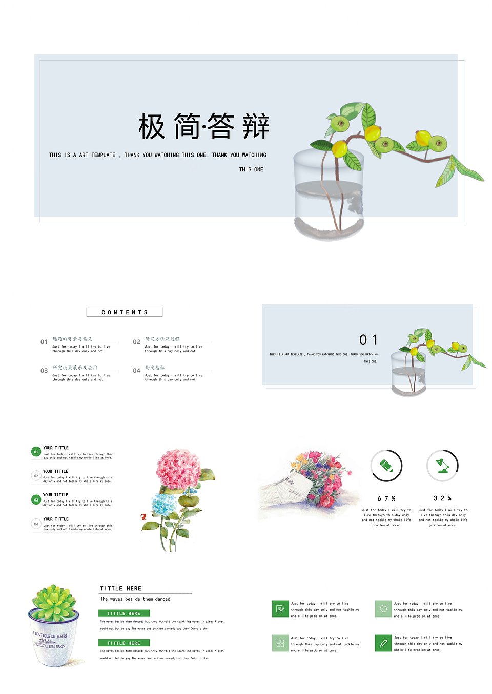 北欧风清新文艺素雅简约答辩PPT模板