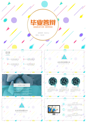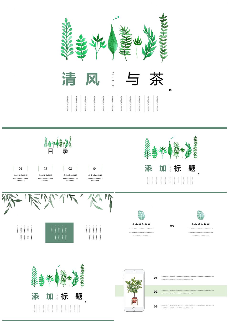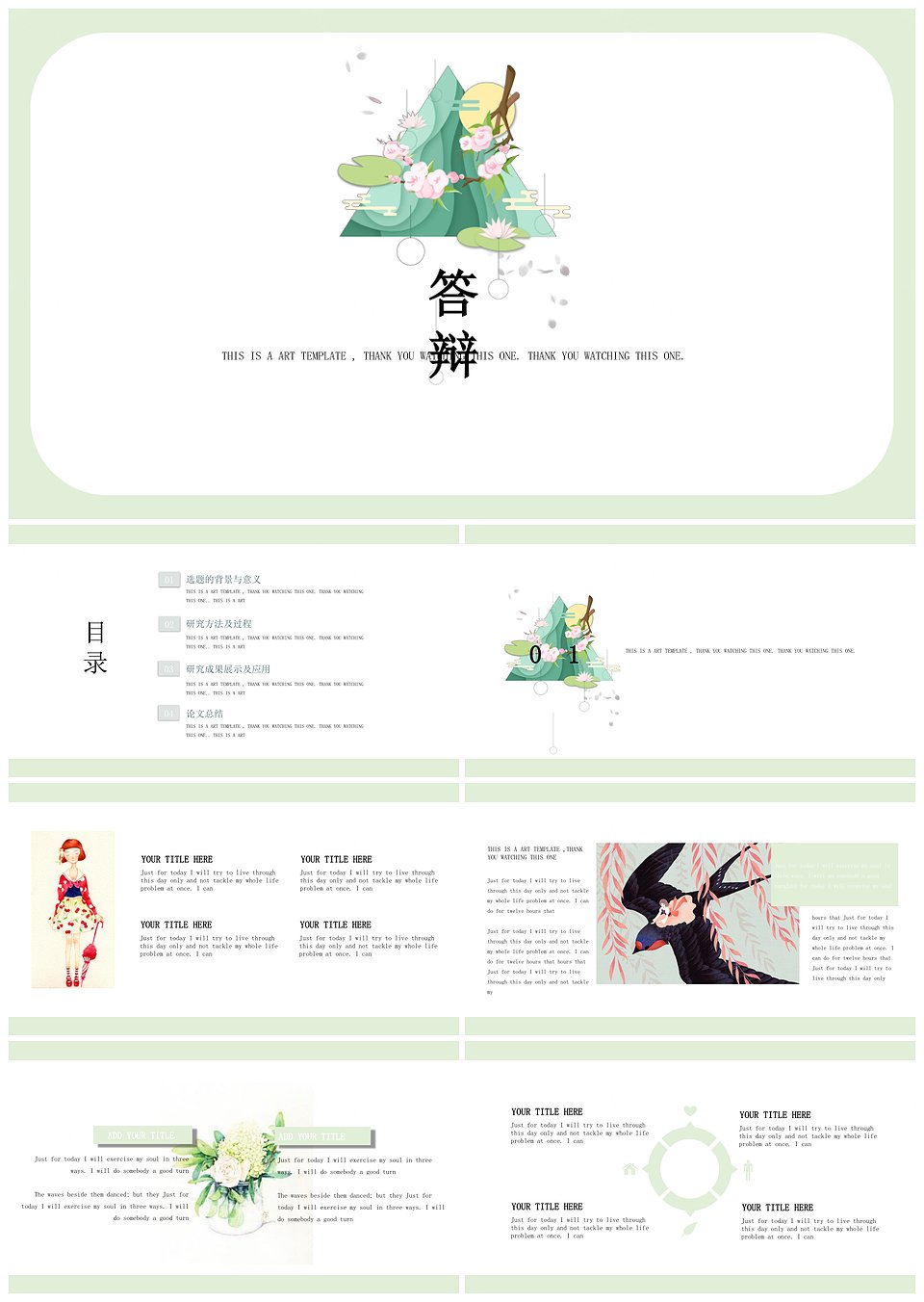 清风水彩手绘毕业答辩小清新简约风PPT模板