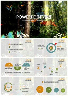 开场唯美森林蝴蝶翩翩起舞动态ppt模板