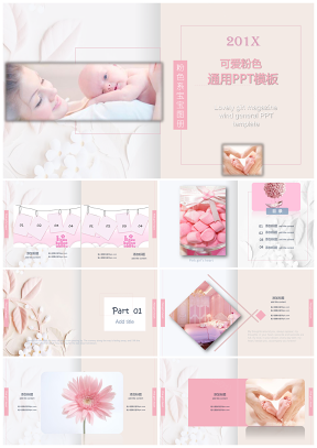 浓情母婴粉红可爱杂志风宝宝成长相册婴儿产品推广ppt模板