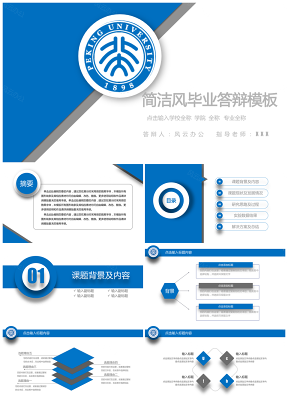 通用蓝色素简毕业答辩PPT模板