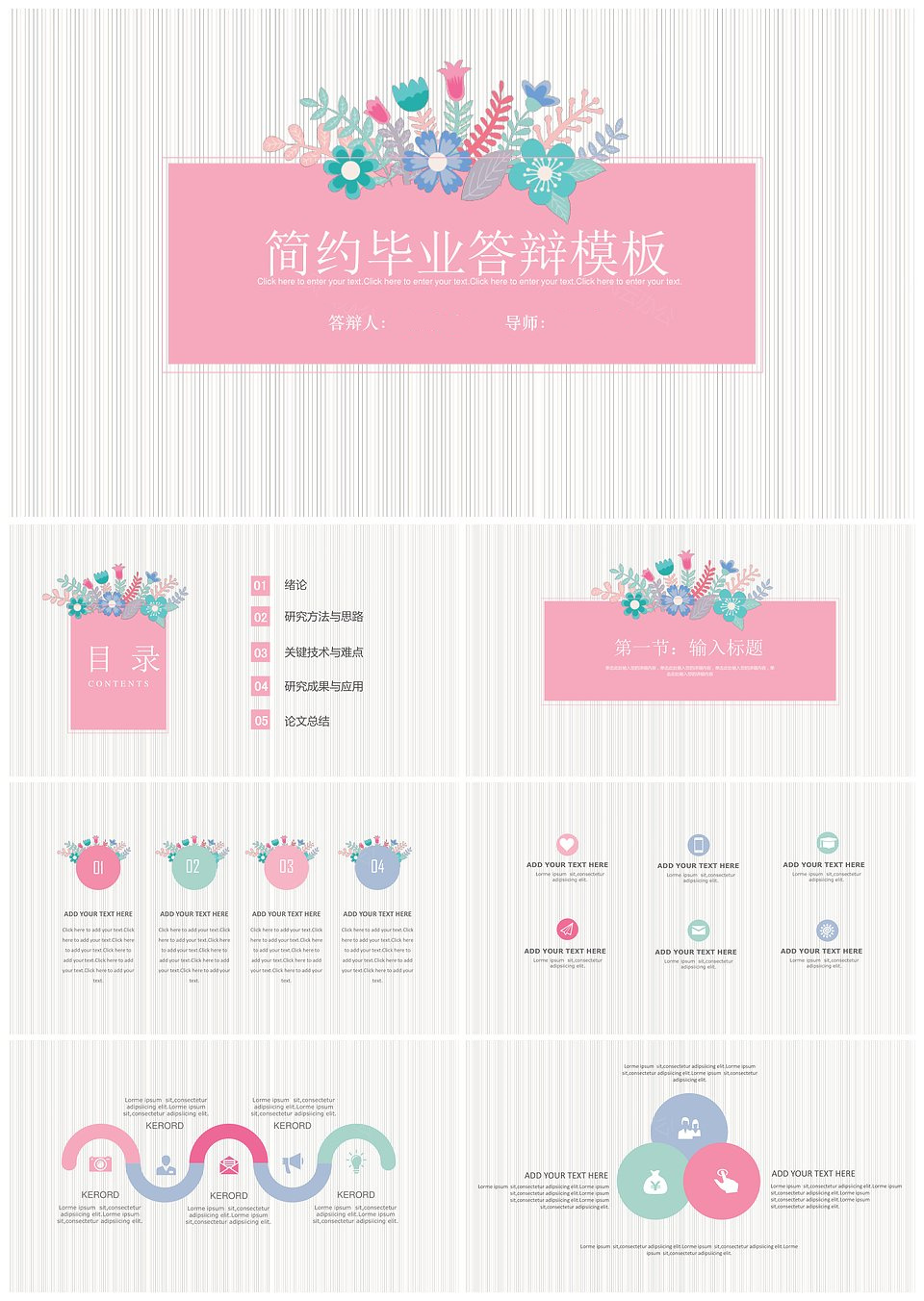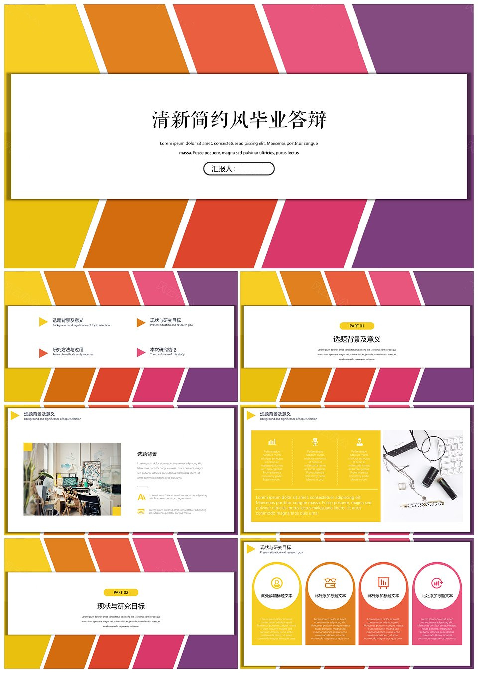 炫彩清新简约毕业论文答辩开题报告PPT模板