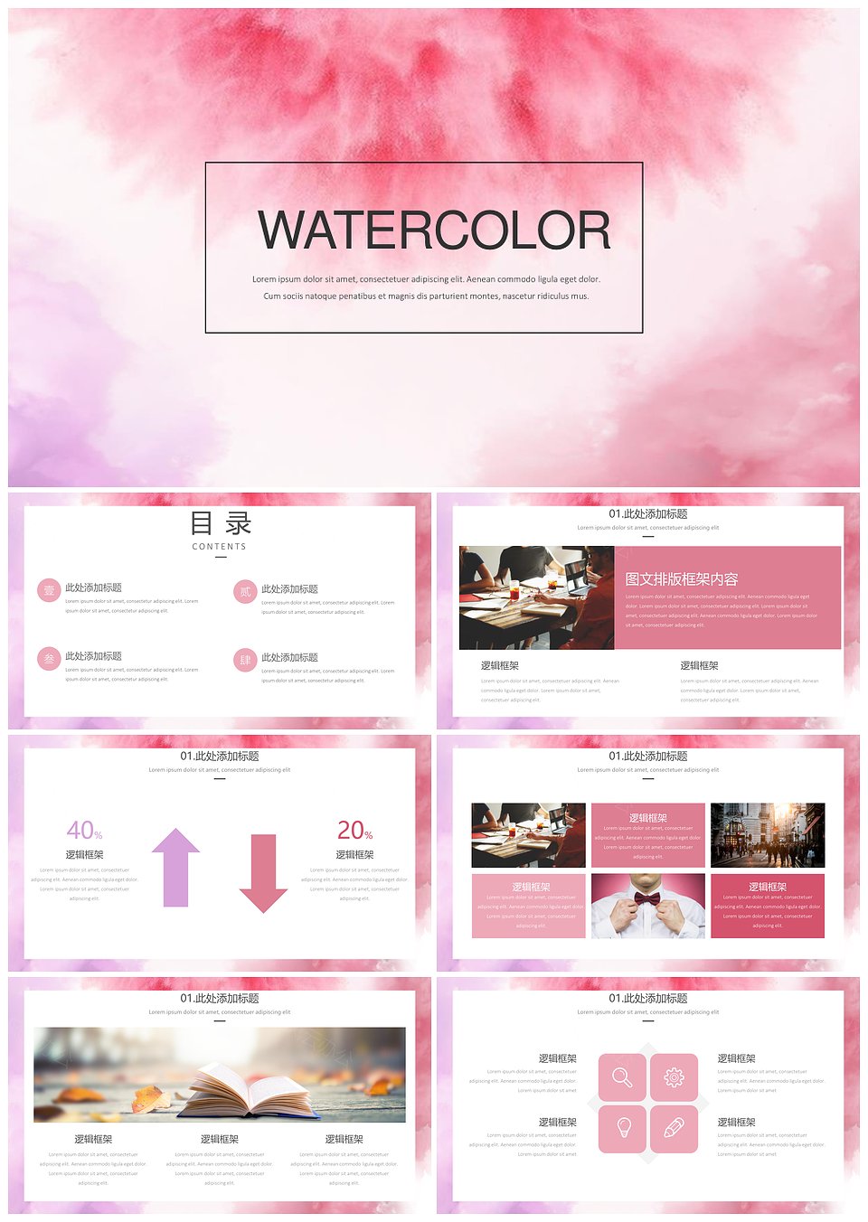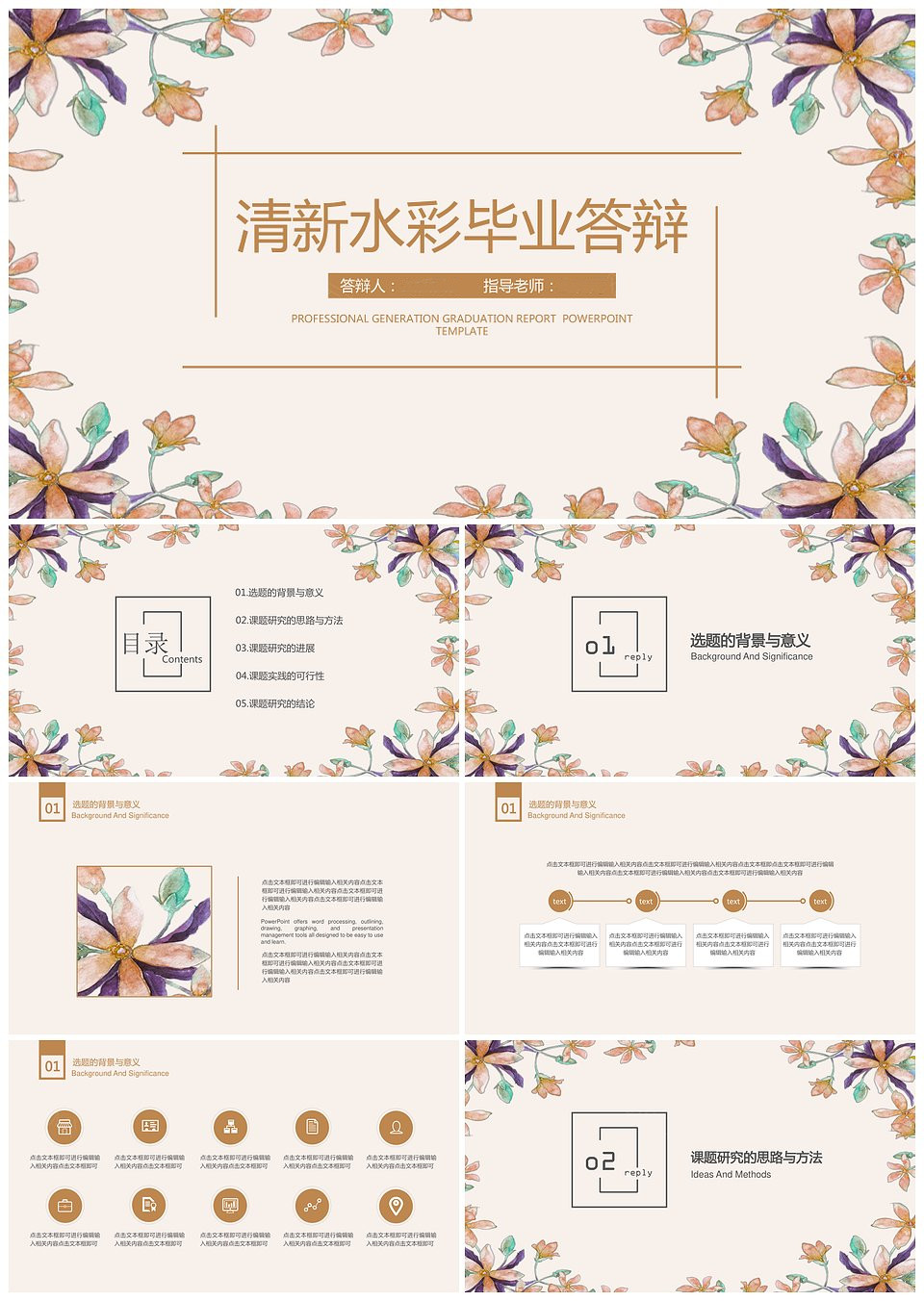水彩小清新教学课件答辩通用模板