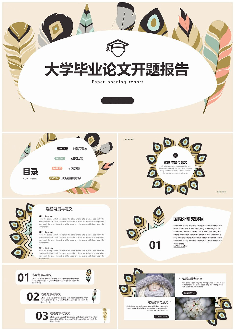 可爱卡通羽毛大学毕业论文开题报告答辩模板
