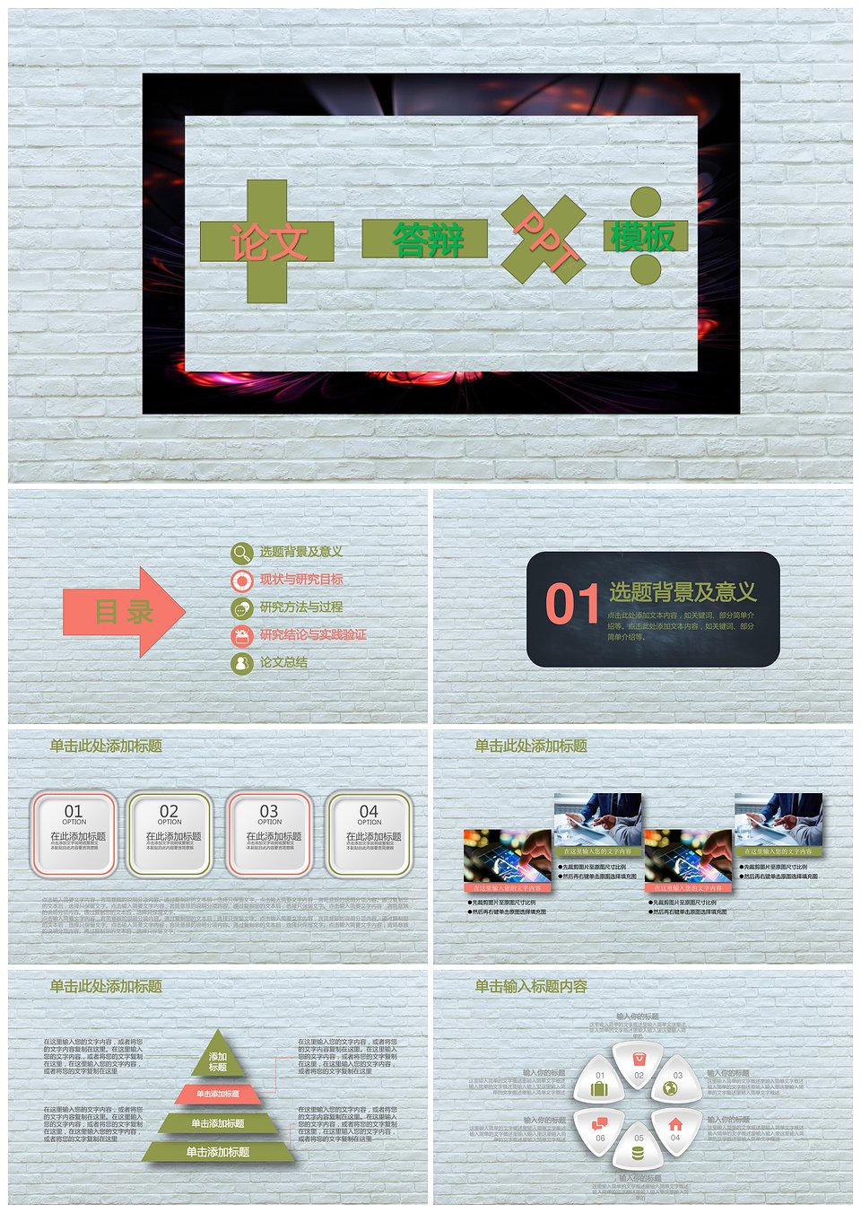 小清新撞色严谨实用论文答辩开题报告PPT
