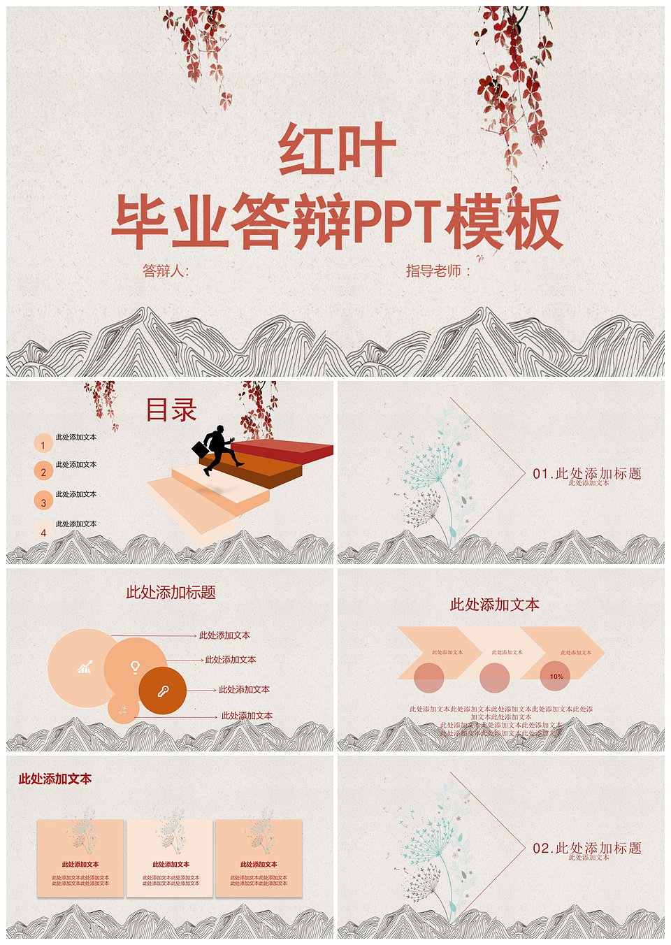 红叶毕业答辩PPT模板