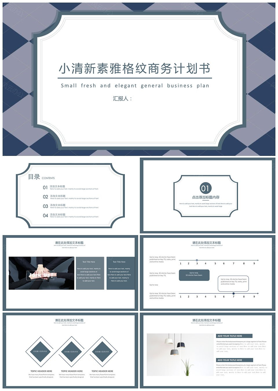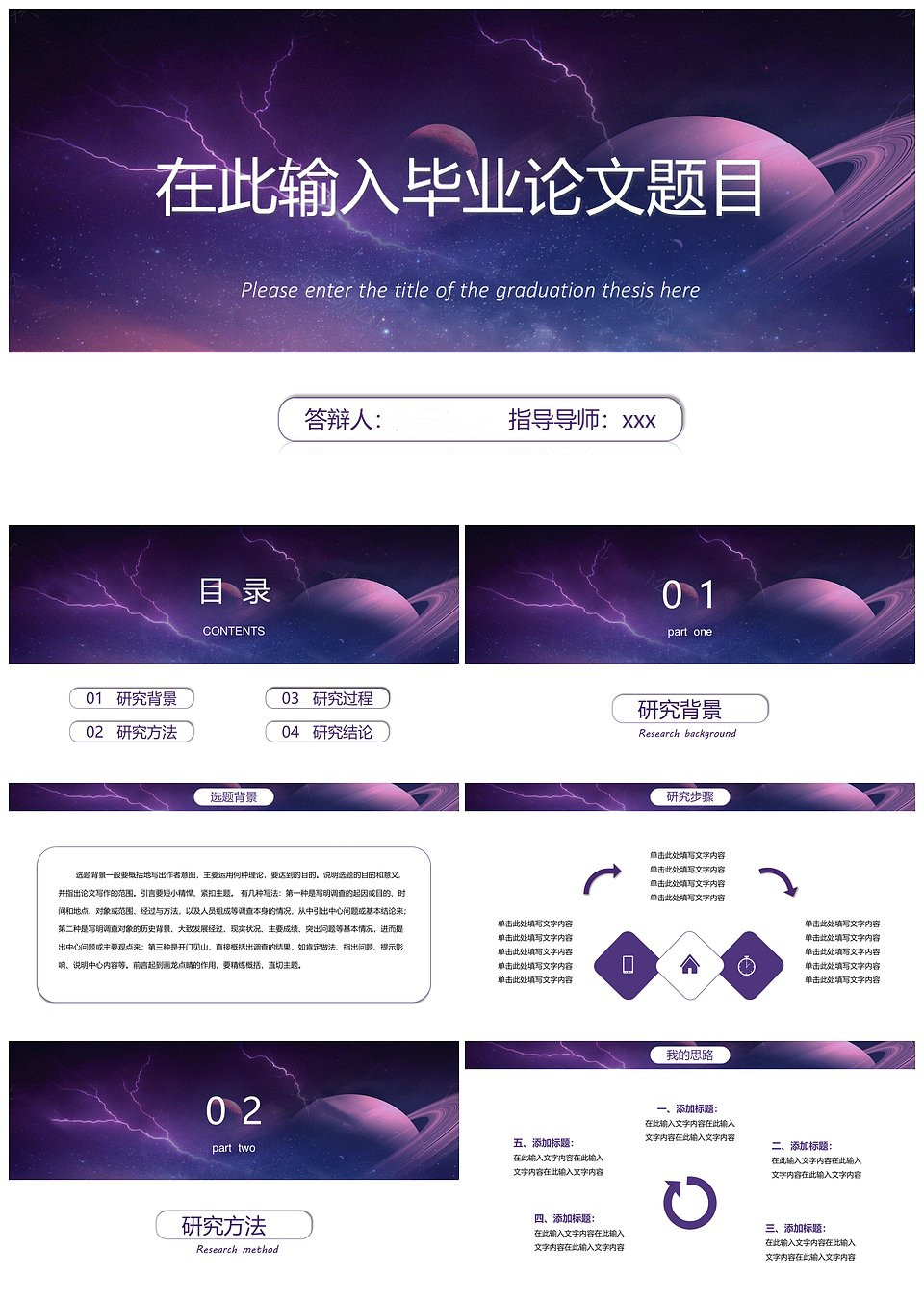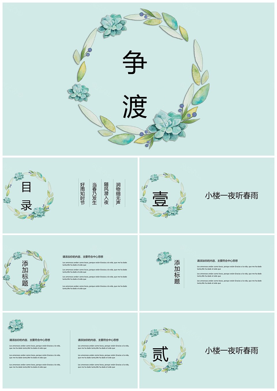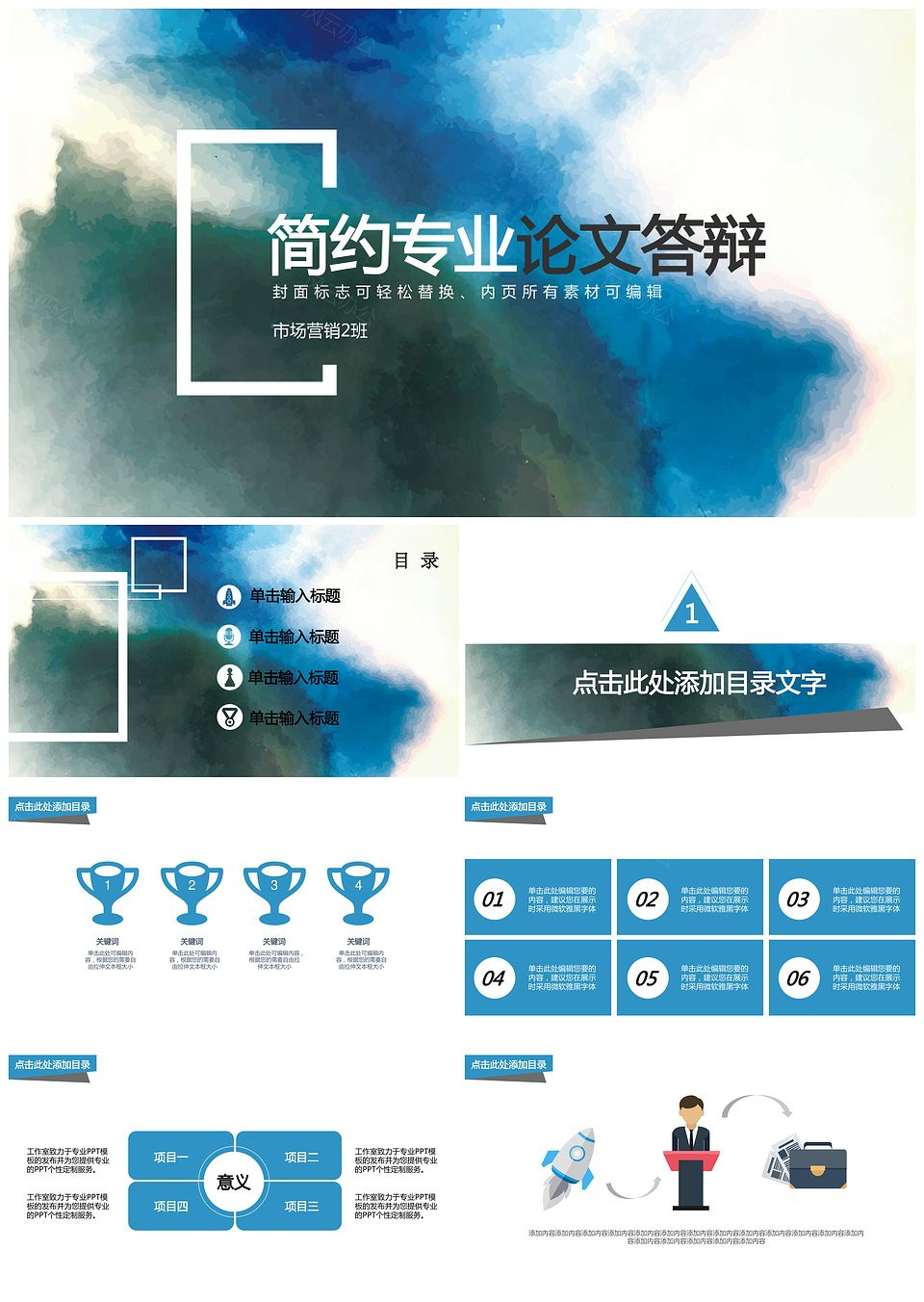 文艺清新简约淡蓝通用PPT模板毕业答辩