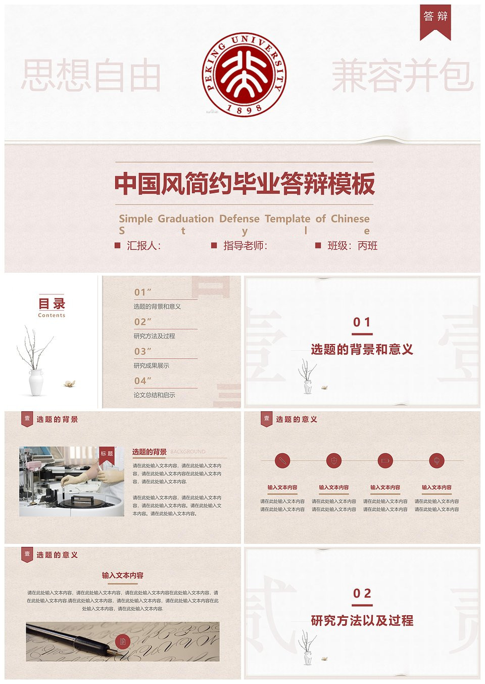 中国风复古风简约范毕业答辩论文答辩PPT模板