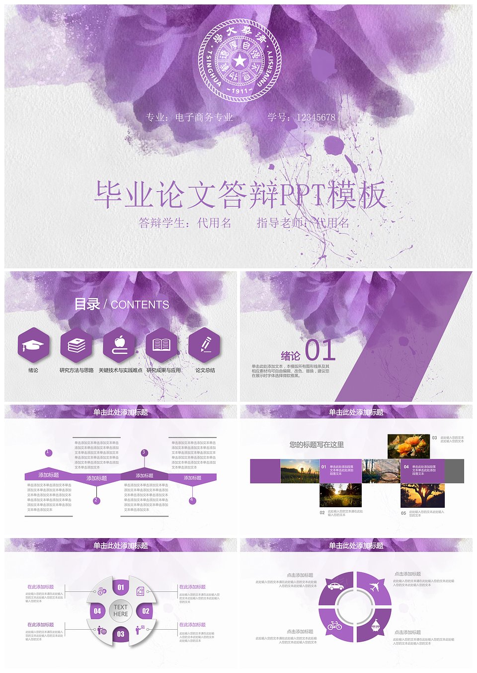 水彩水墨风清新大气动态毕业论文答辩通用PPT模板