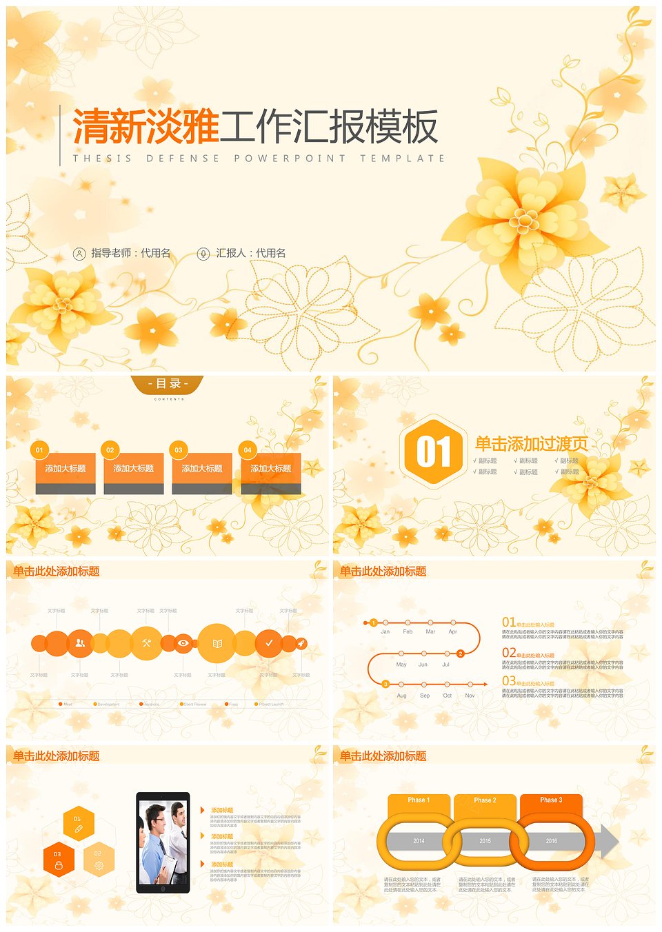 黄色清新淡雅毕业论文答辩商务工作汇报动态PPT模板