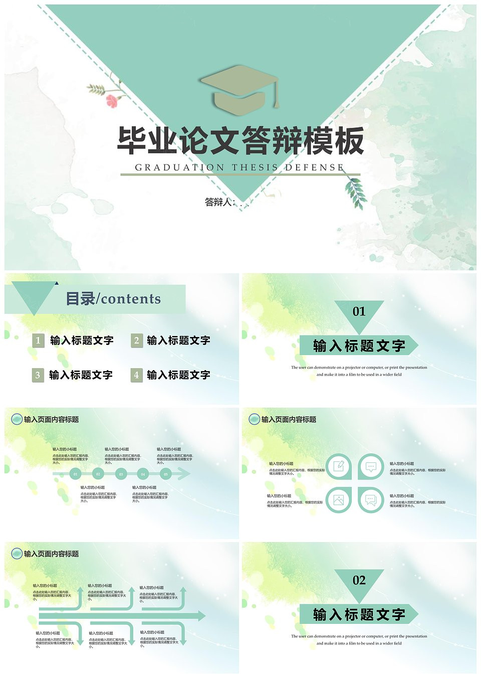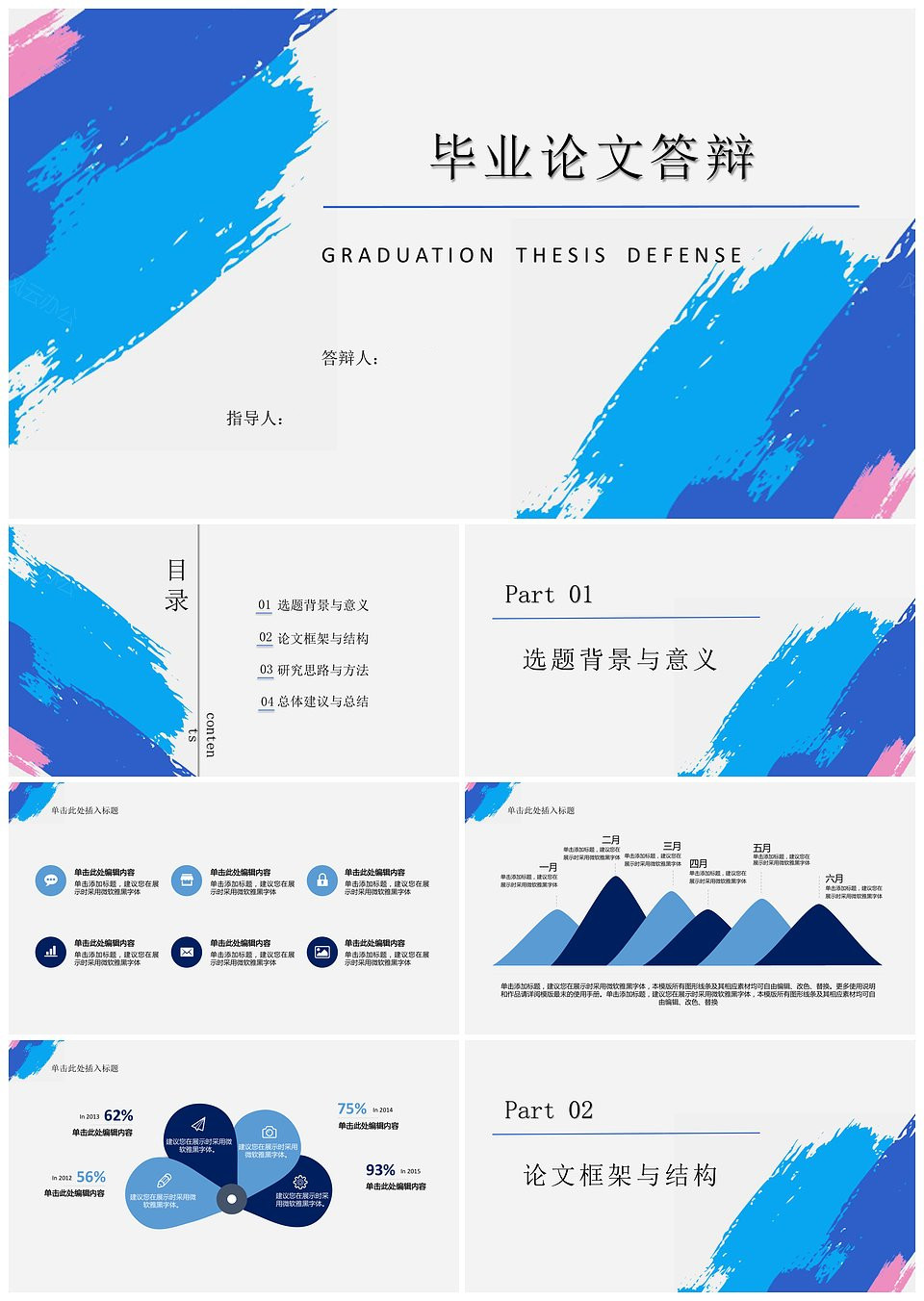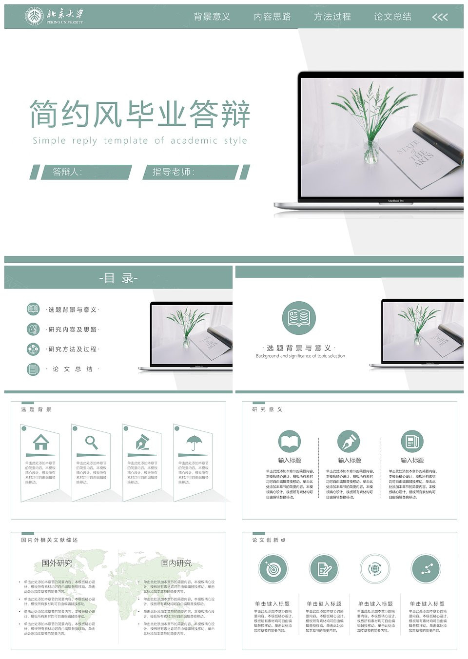 蓝色清新文艺简约通用PPT模板毕业答辩