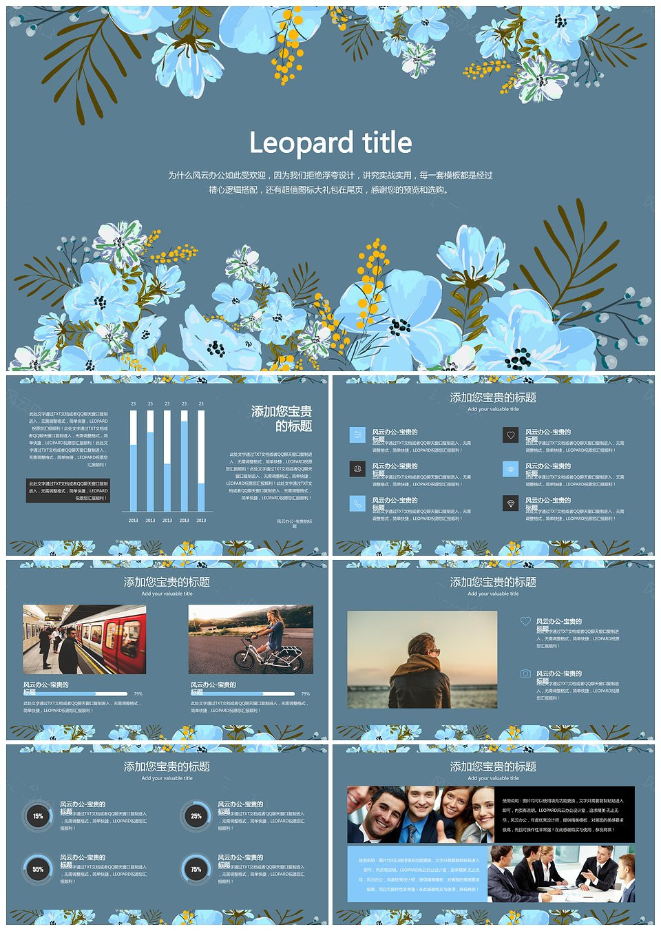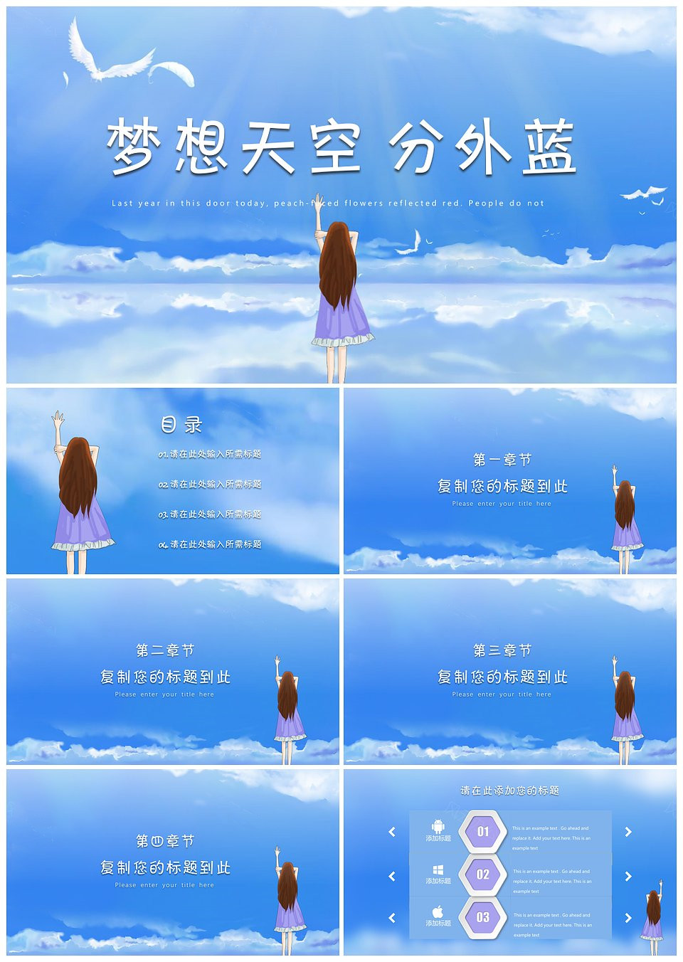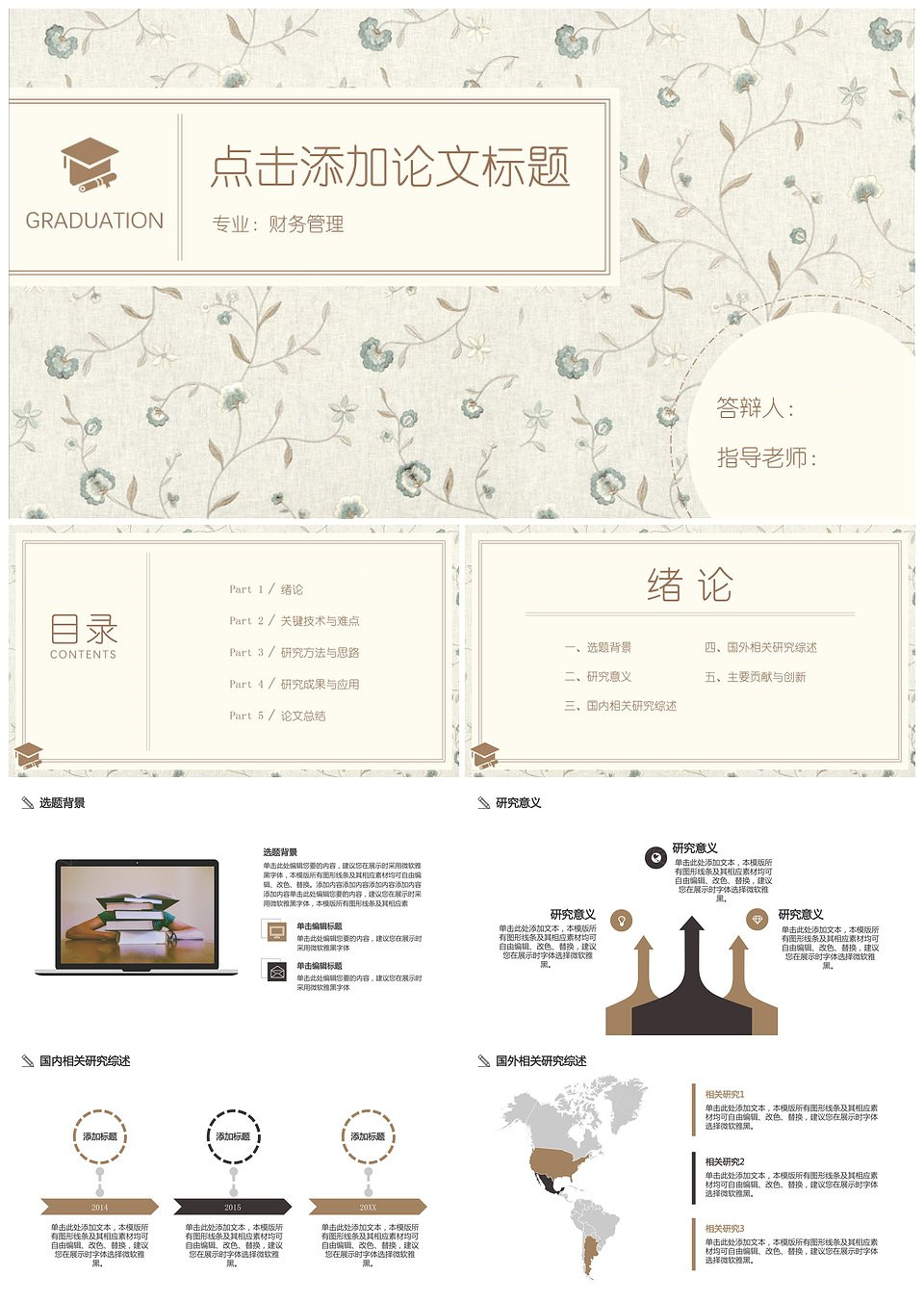蓝色清新文艺简约通用PPT模板毕业答辩