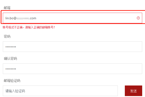 今天又有同学遇到PbootCms会员注册过程中遇到邮箱帐号无法注册,提示: 帐号格式不正确,请输入正确的邮箱帐号! 这个情况遇到的比较少, 原因是因为邮箱帐号中带有特殊符号。 像上图中,邮箱前缀中就包含一个点( . )。 由于官方版本中的正则校验未考虑到...
