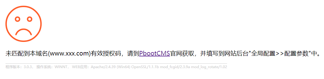 PbootCMS时可能会感到困惑。下载部署好后,打开页面提示:如果没有该域名的有效授权码(),请到pbootcms官网获取,并在网站后台的“全局配置>>配置参数”中填写。...
