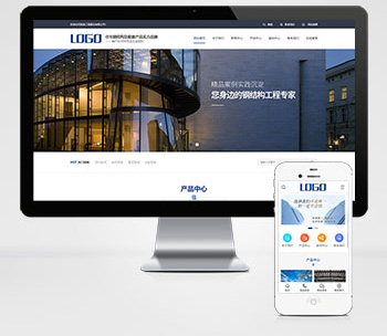 (PC+WAP)蓝色钢结构机械五金网站pbootcms模板 营销型工程建筑基建网站源码下载