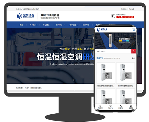(自适应手机)响应式营销型恒温恒湿机环境设备机械设备网站pbootcms模板蓝色营销型空调设备源码下载