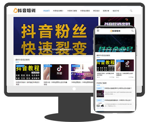 (自适应手机)响应式抖音课程培训资讯美文博客seo类网站pb模板