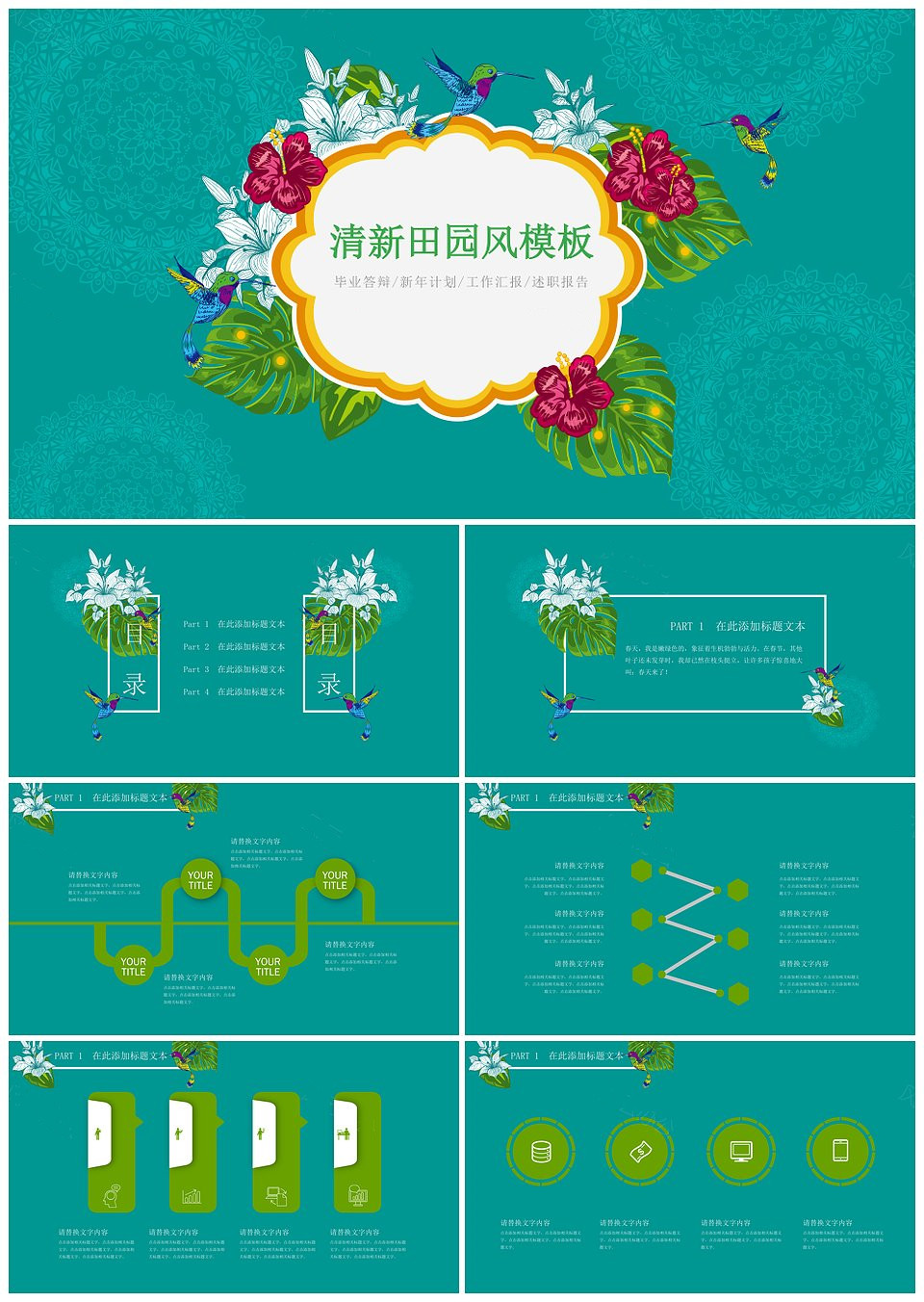 清新文艺田园风PPT模板