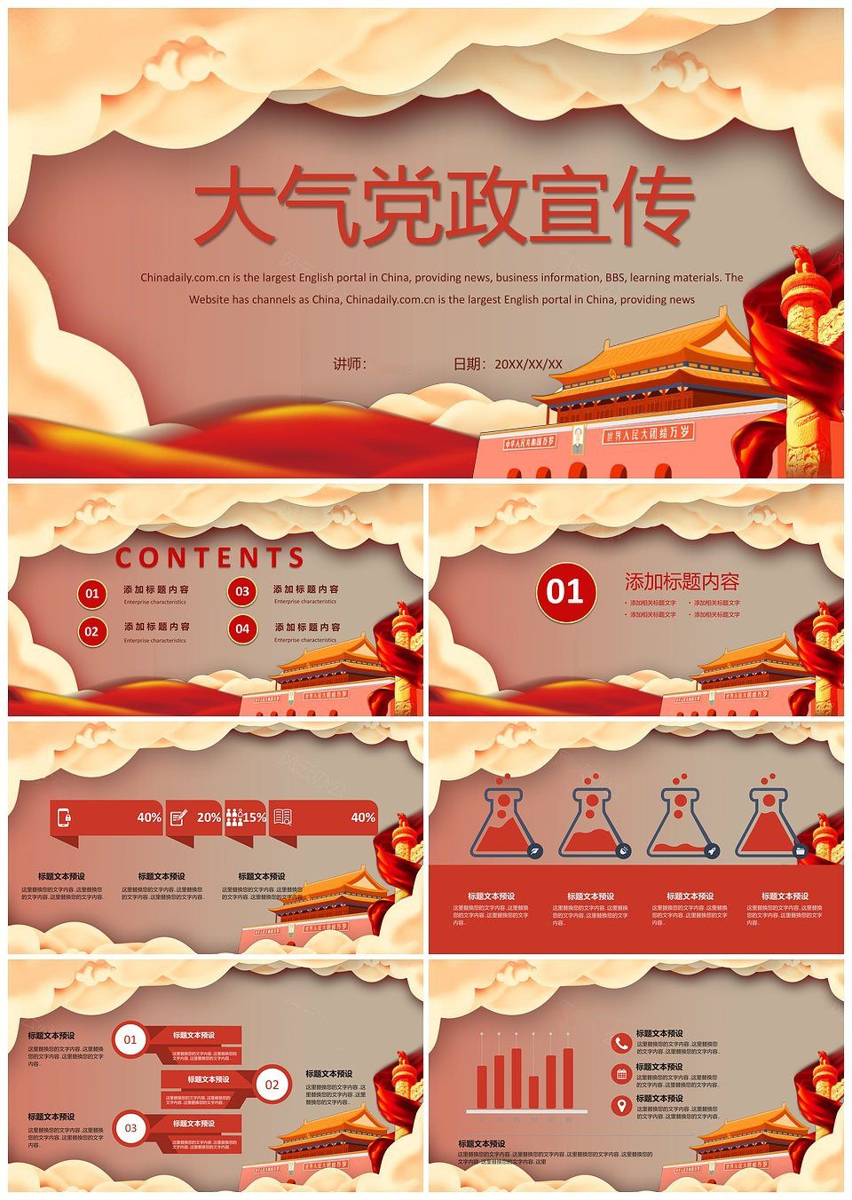 大气党政宣传思想教育课件PPT模板