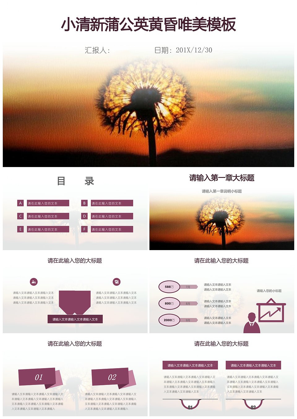 小清新蒲公英黄昏唯美PPT模板