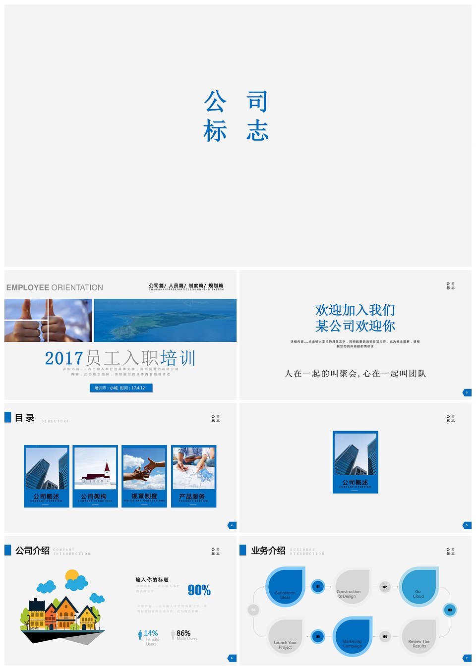 宝石蓝经典商务动态员工入职培训PPT模板