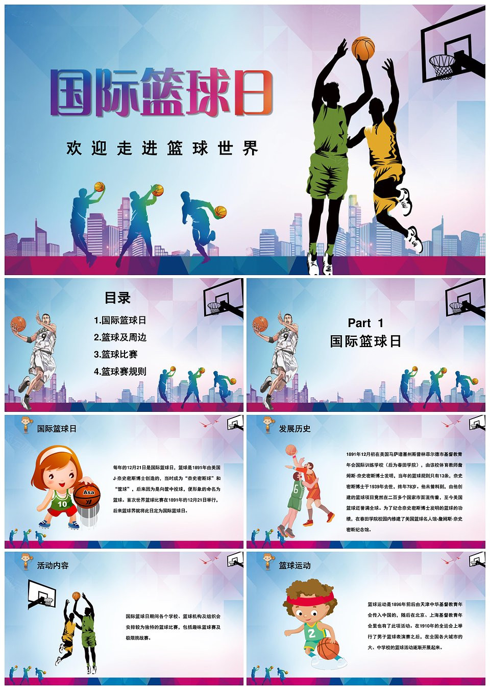 国际篮球日社团招新PPT模板