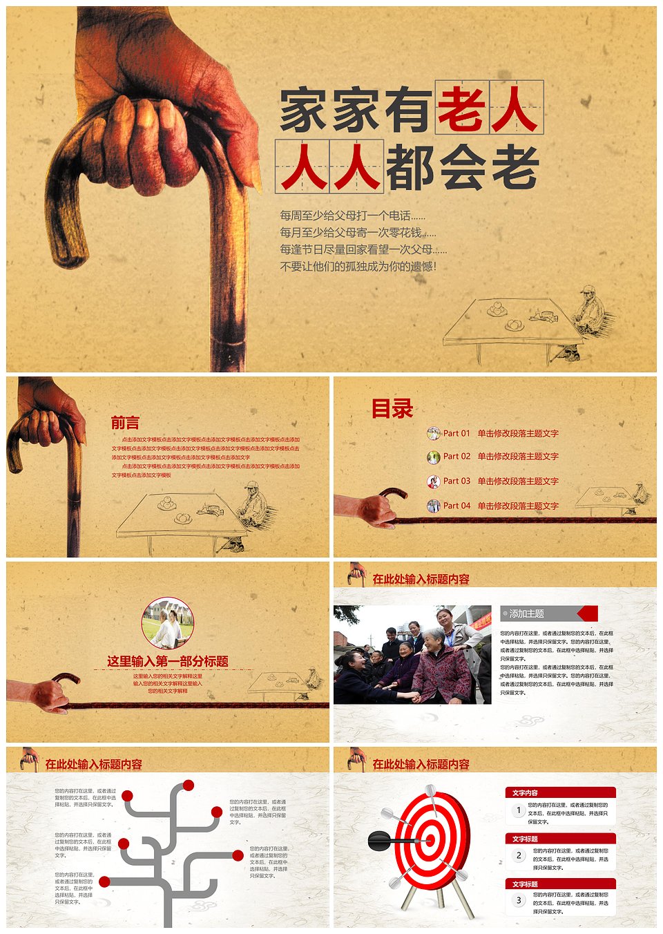 温馨细腻关爱老人PPT模板