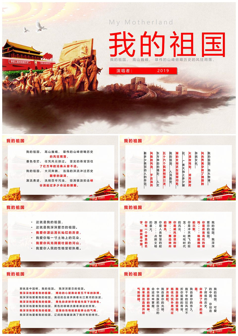 我的祖国诗歌朗诵PPT模板