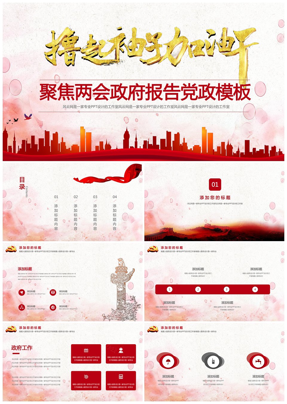 政府报告两会工作公务员培训入职党政党建精美PPT模板