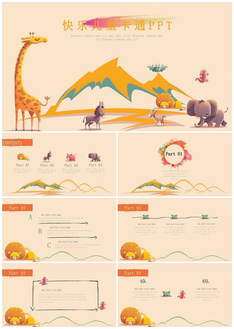 黄色卡通动物可爱手绘家长会亲子活动教育培训招生PPT模板
