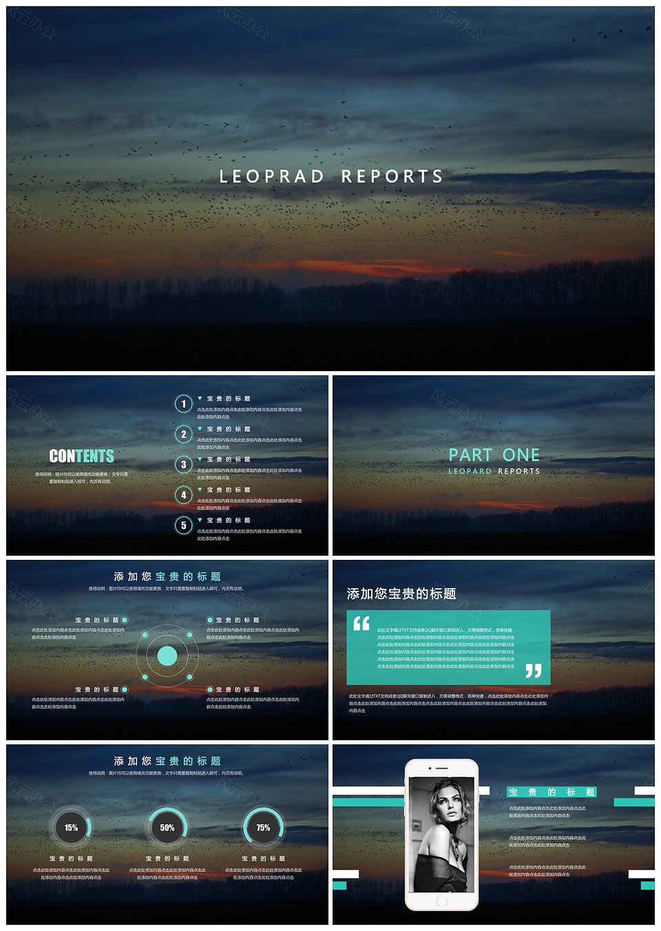 非主流夕阳飞鸟树林简约实用通用商业计划书