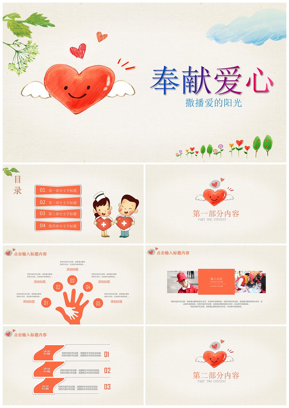 爱心捐血慈善救助志愿者义工红十字通用ppt模板