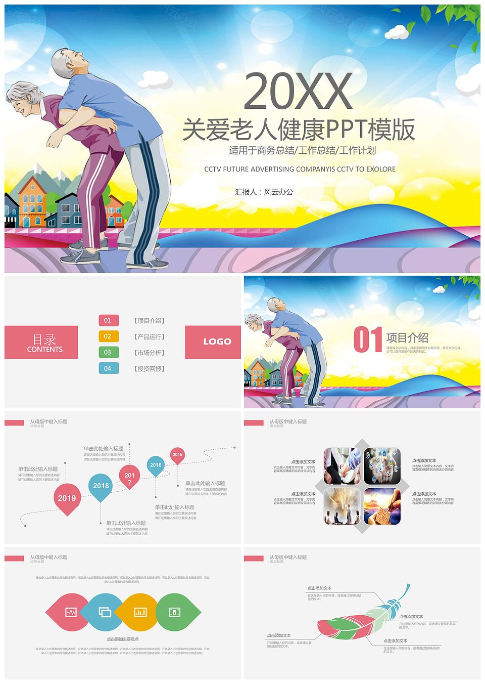 关爱老人老年健康老俩口养老敬老院老年项目PPT模版