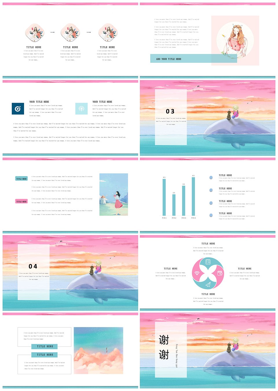 日系水彩小清新工作汇报教育培训办公通用PPT模板