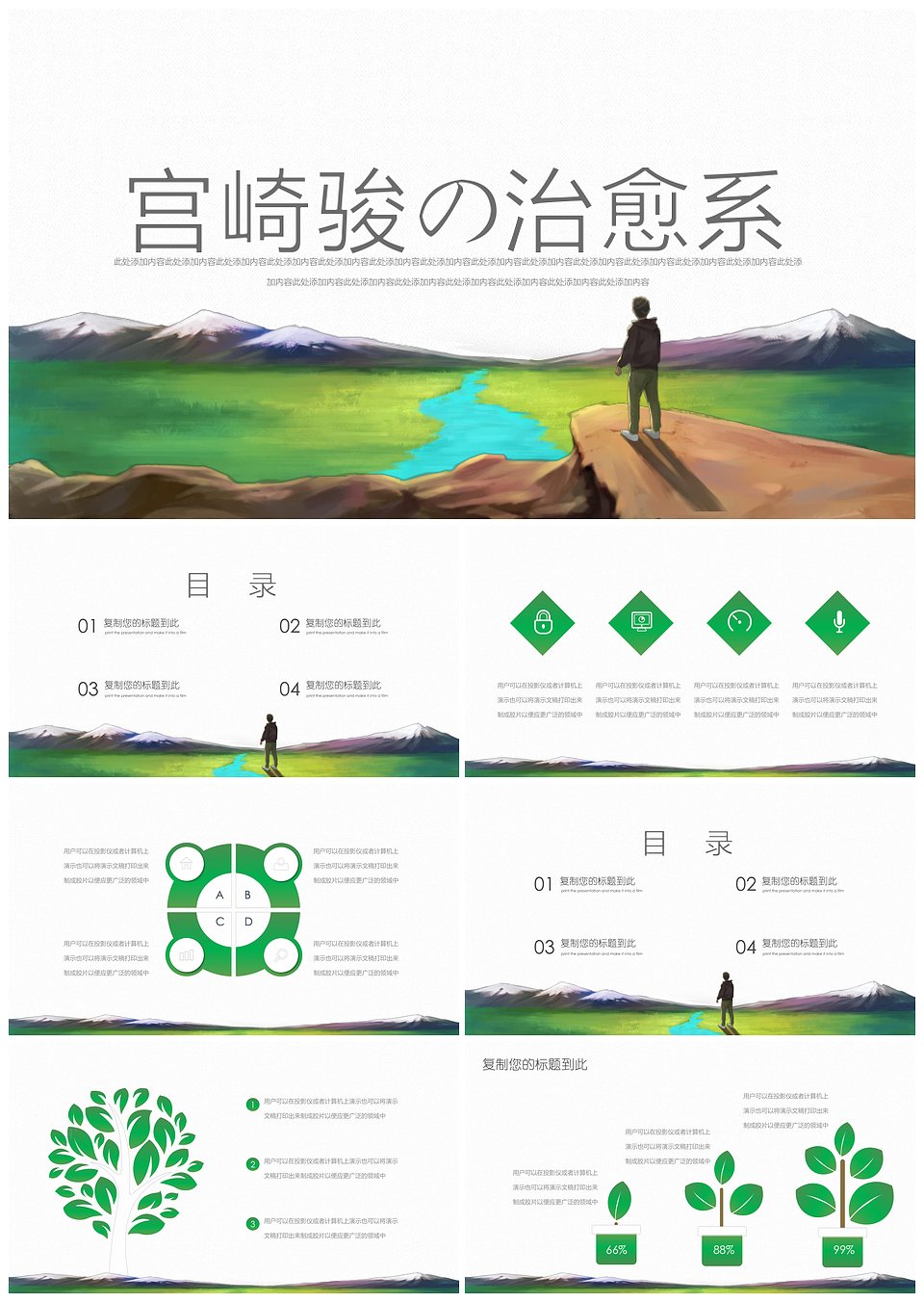 小清新宫崎骏治愈系通用ppt模板