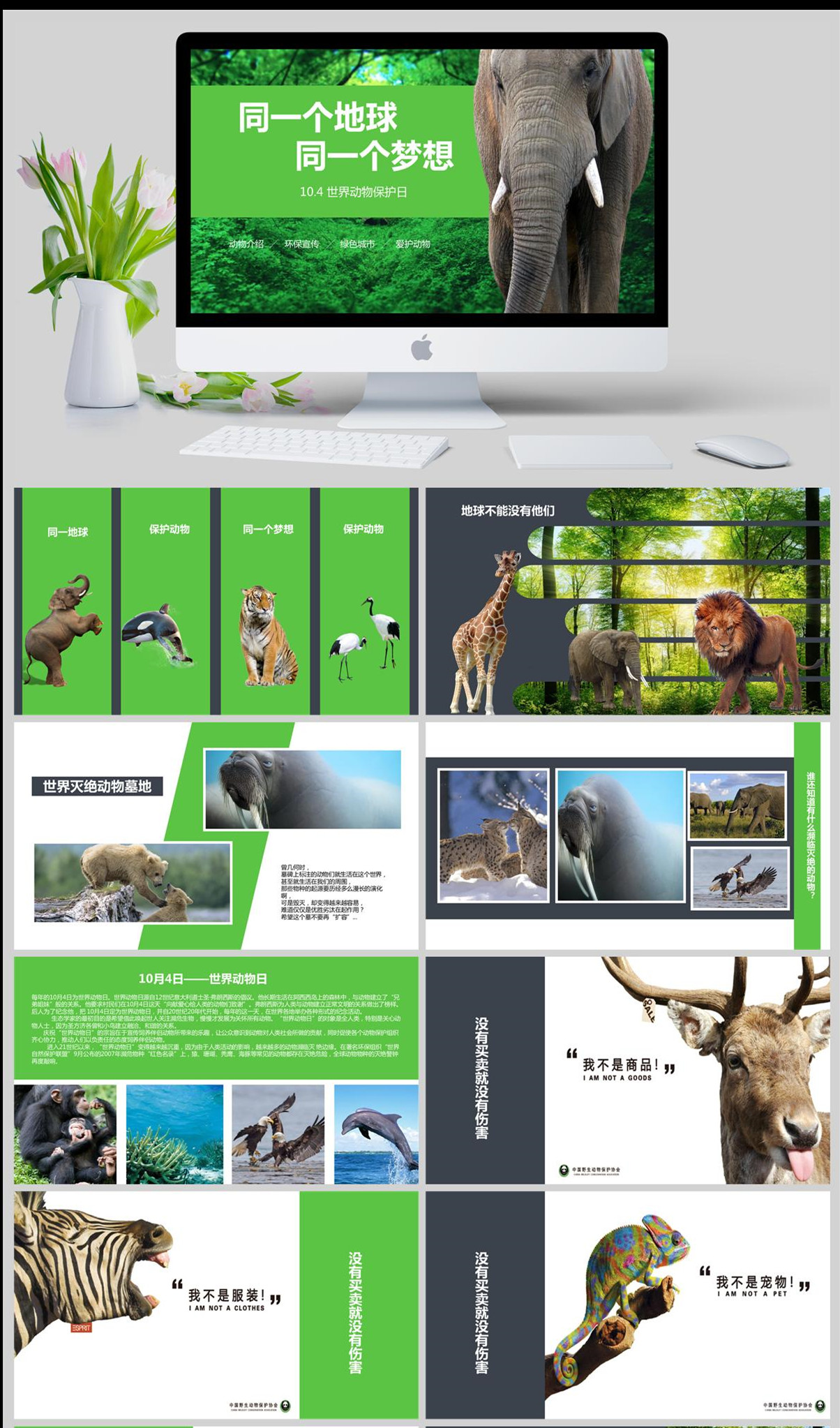 同一个地球同一个梦想世界动物保护日PPT模板