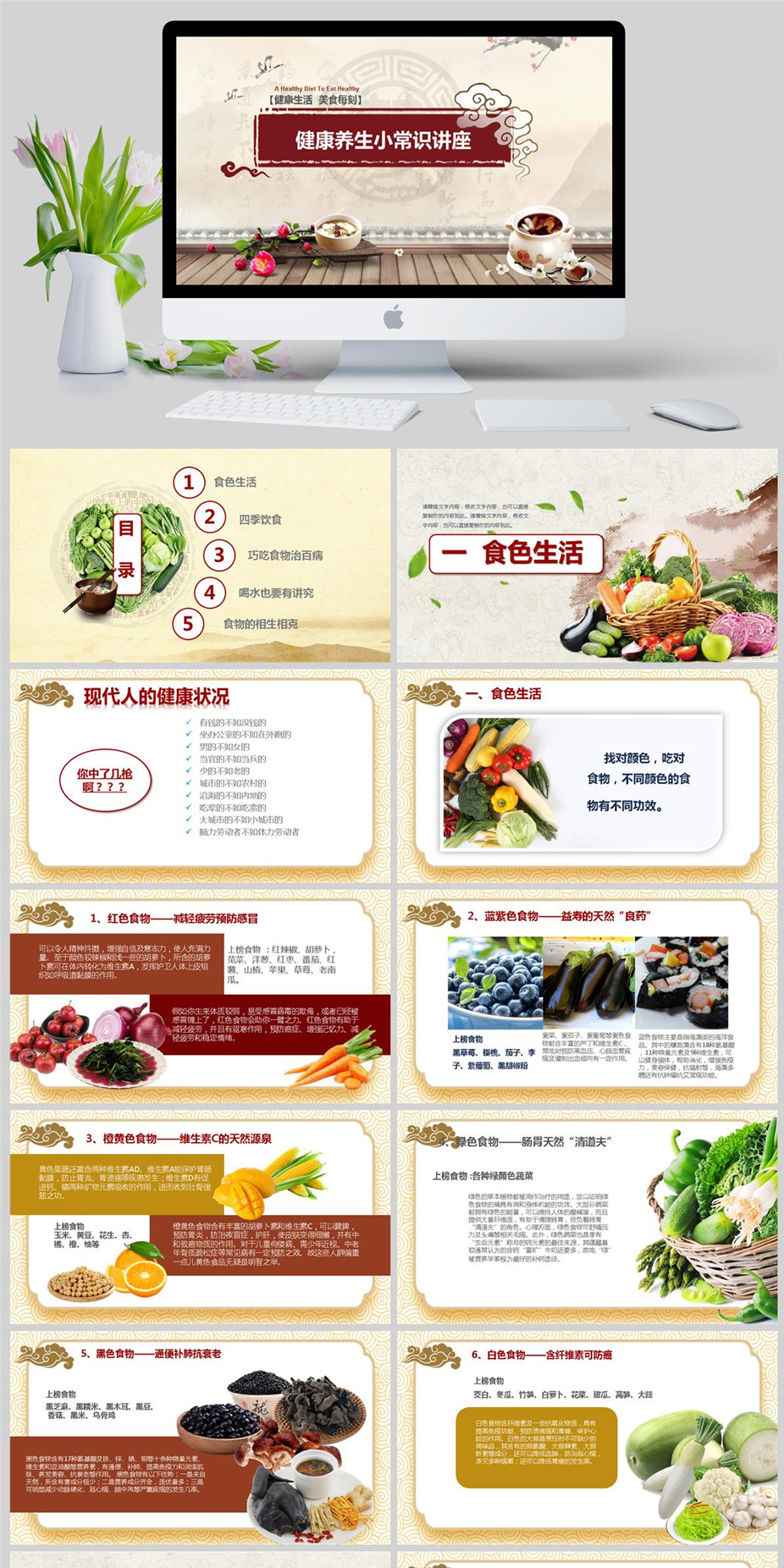 中国风健康养生小常识讲座PPT模板