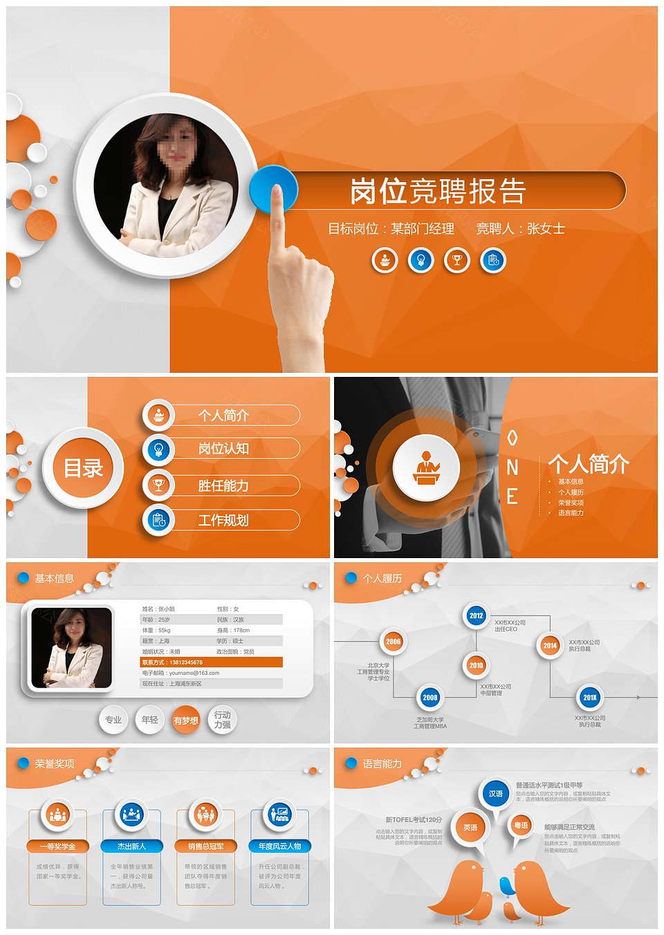 橙色活力简历微立体岗位竞聘个人简历PPT