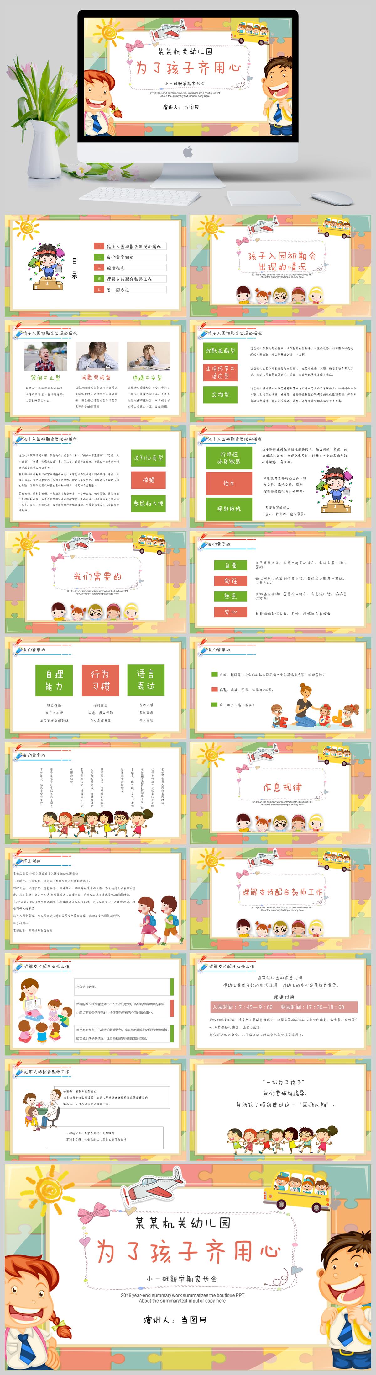 卡通新学期幼儿园开园家长会为了孩子齐用心通用PPT模板