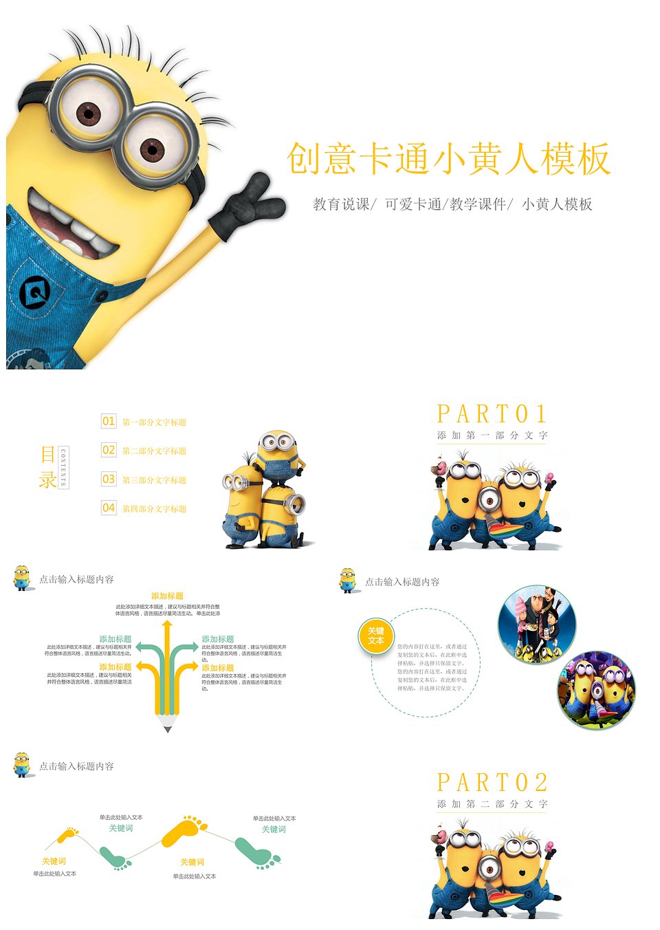 创意小黄人卡通儿童教育课件招生简章动态ppt模板