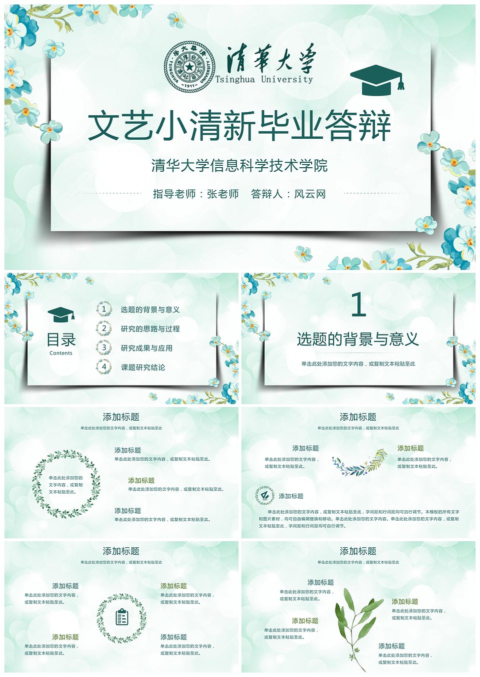 绿色小清新毕业论文答辩开题报告毕业答辩动态PPT模板