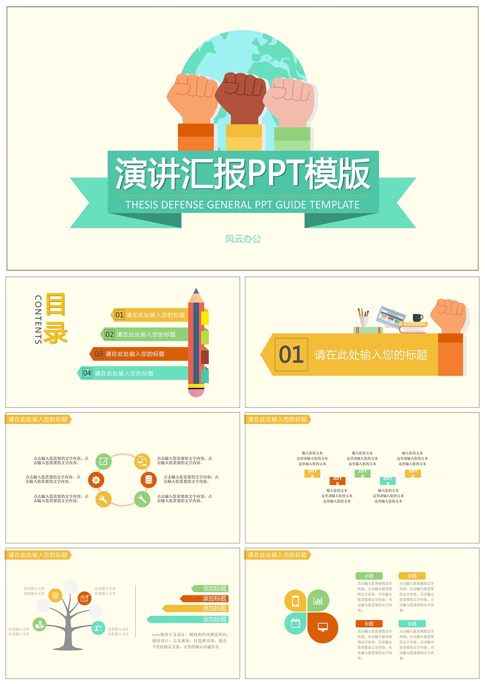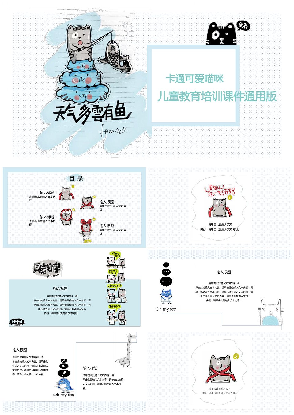 小清新卡通可爱文艺动物手绘创意工作汇报教育培训通用PPT模板