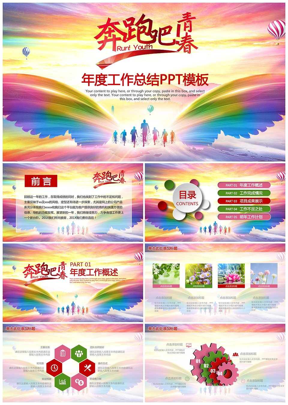 彩色运动青春正能量团委五四青年节共青团PPT模板
