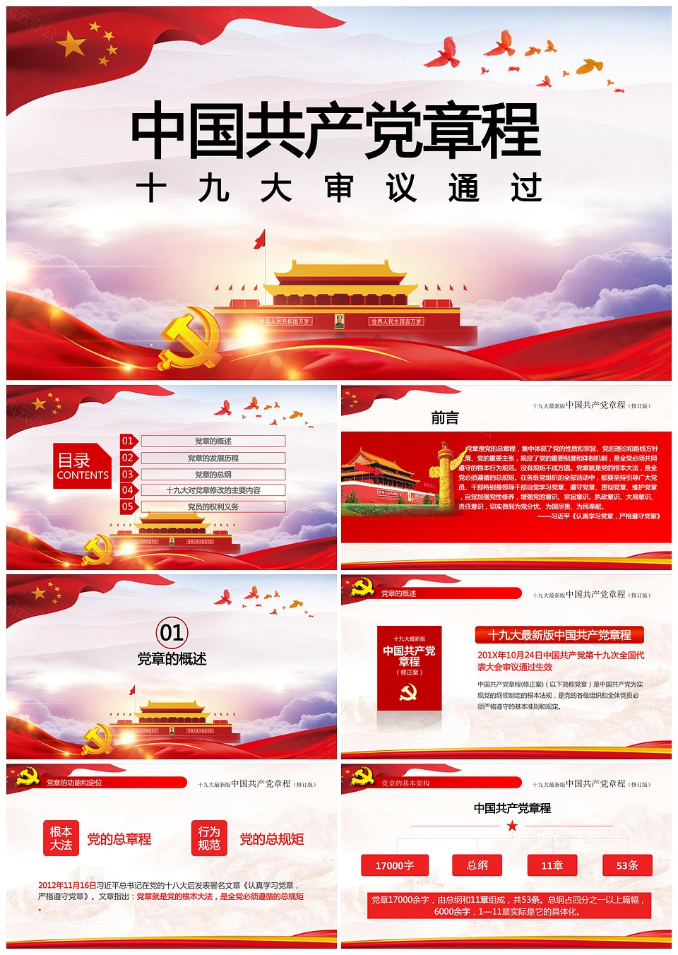 十九大会议精神解读新时代中国特色社会主义党政风PPT模板