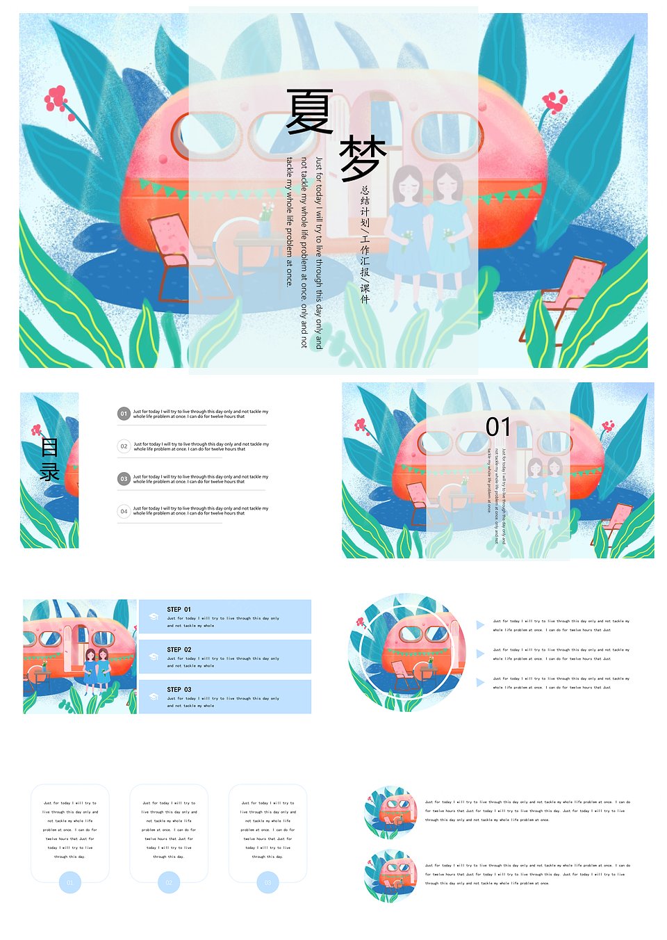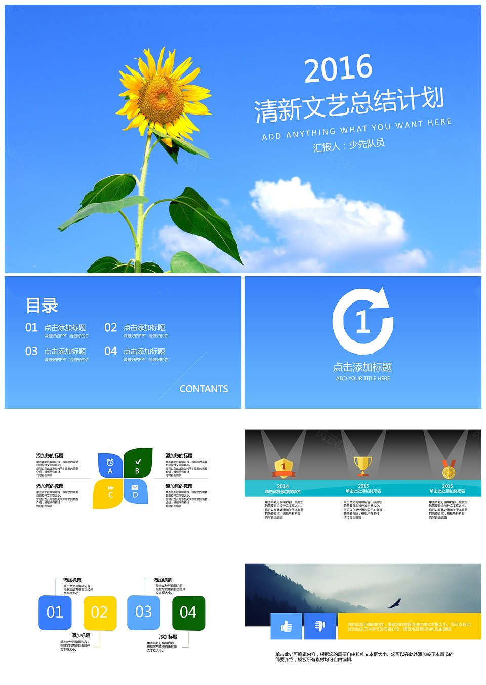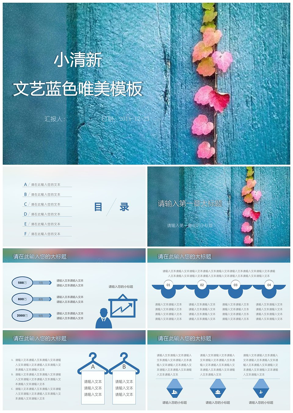 蓝色经典小清新文艺年终总结计划商务通用PPT模板