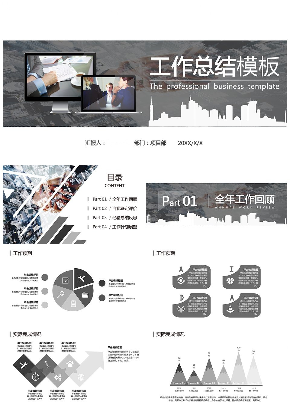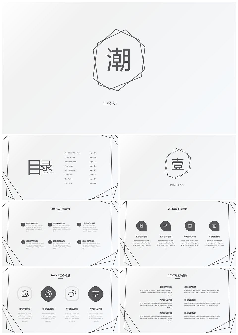 灰色简约时尚炫彩几何商务汇报PPT模板