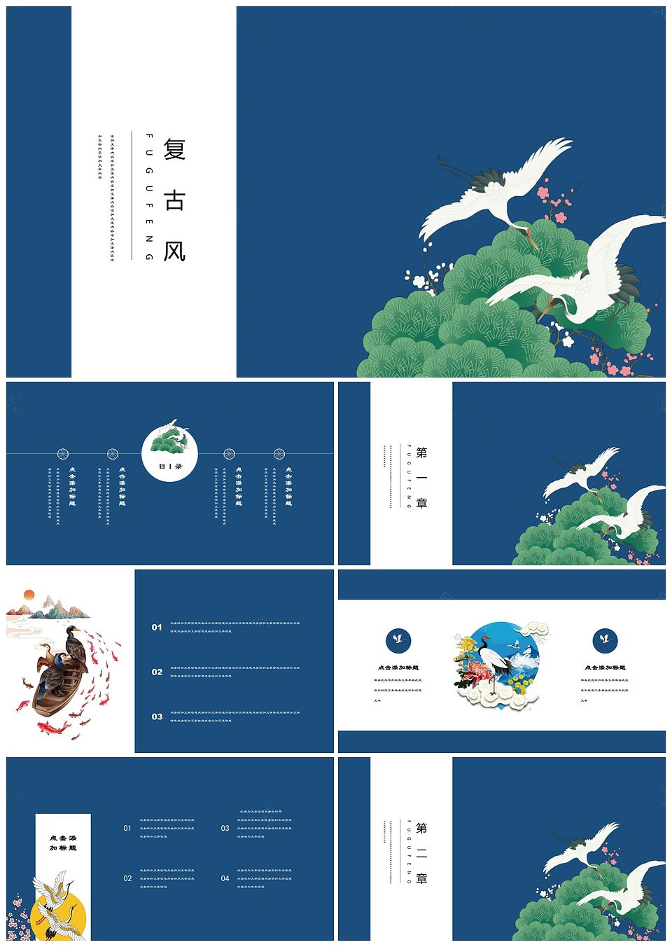 复古仙鹤唯美中国风文艺年终总结PPT模板